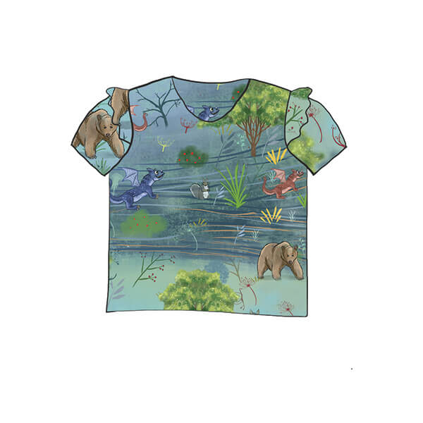This Enchanted Forest Dragons Frill Top is made of 95% cotton and 5% lycra and are available from 0-3 months up to 8 years. This item is available in the following options: