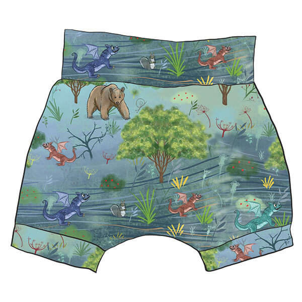 Our super comfortable Enchanted Forest Dragons Harem is perfect for children in nappies. They features a yoga waistband and ankle cuffs for added comfort for your little ones.