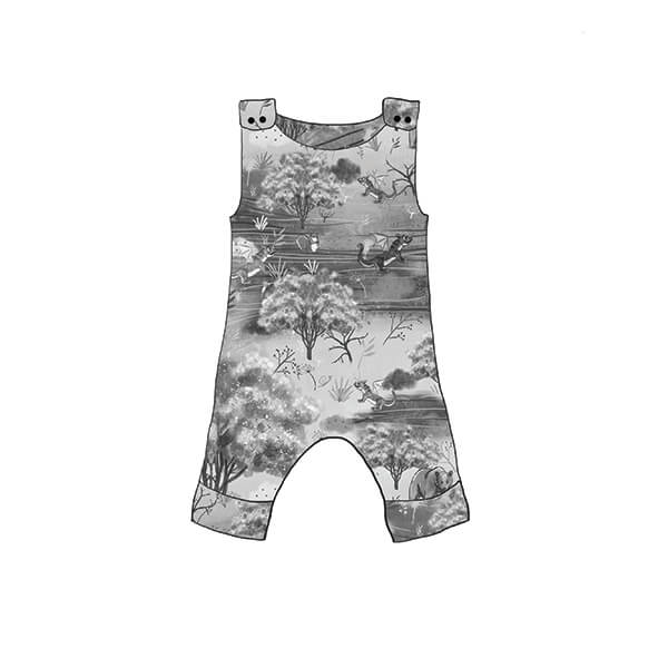 The Enchanted Forest Mono Dragons Romper is a lovely addition to any wardrobe. This Romper is made of 95% cotton and 5% lycra and is available from preemie up to 8 years. This item is available in the following options: