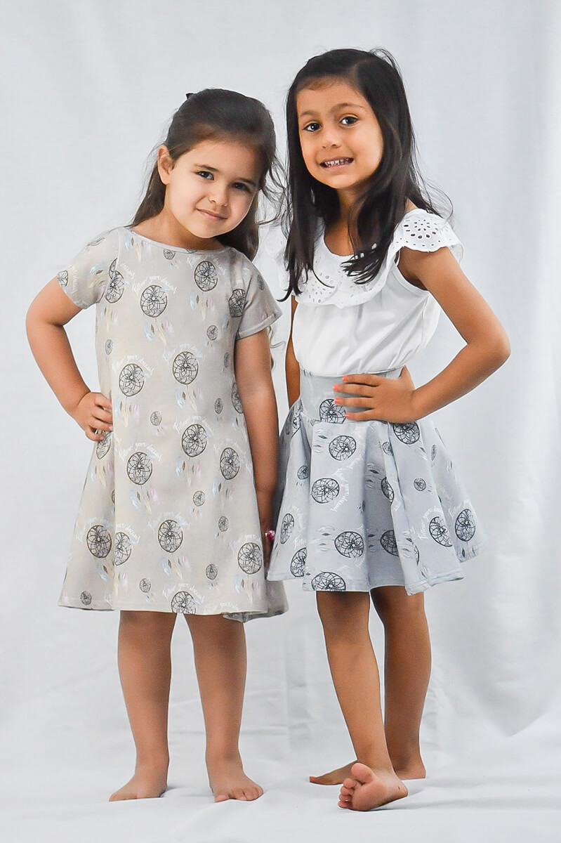 The Grey Follow Your Dreams Mono dress is short sleeved with a banded neck band and is available from 3 months – 8 years. This dress is made of 95% cotton and 5% lycra.