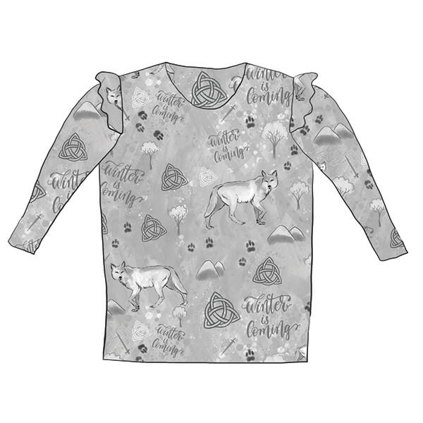 This Winter Is Coming Mono Frill Top is made of 95% cotton and 5% lycra and are available from 0-3 months up to 8 years. This item is available in the following options: