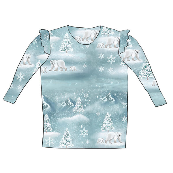 This Winter Polar Bears Frill Top is made of 95% cotton and 5% lycra and are available from 0-3 months up to 8 years. This item is available in the following options: