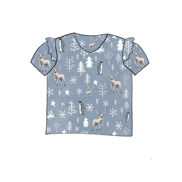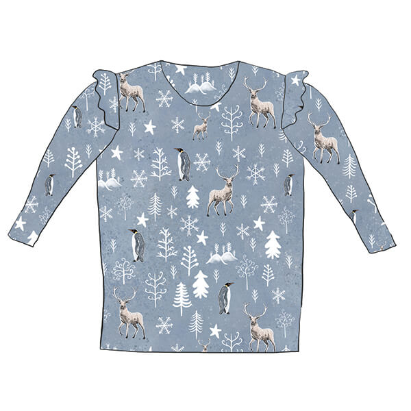 This Winter Stags Frill Top is made of 95% cotton and 5% lycra and are available from 0-3 months up to 8 years. This item is available in the following options: